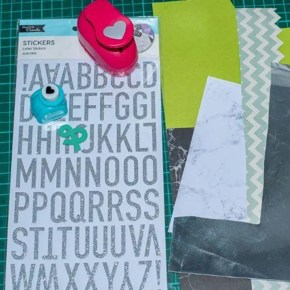 Now that the main part of the wedding scrapbook embellishment was done, I glued it onto some card and decorated the remaining space using the craft paper punches and die-cut letters and scrapbook stickers to spell the words, ''Mr & Mrs''.