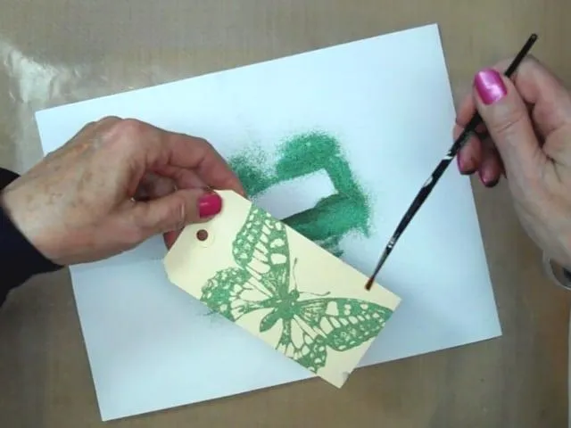 Experiment with combining inks and scrapbook embossing powders to create a "wet" ,"marbled" or "metal" look...